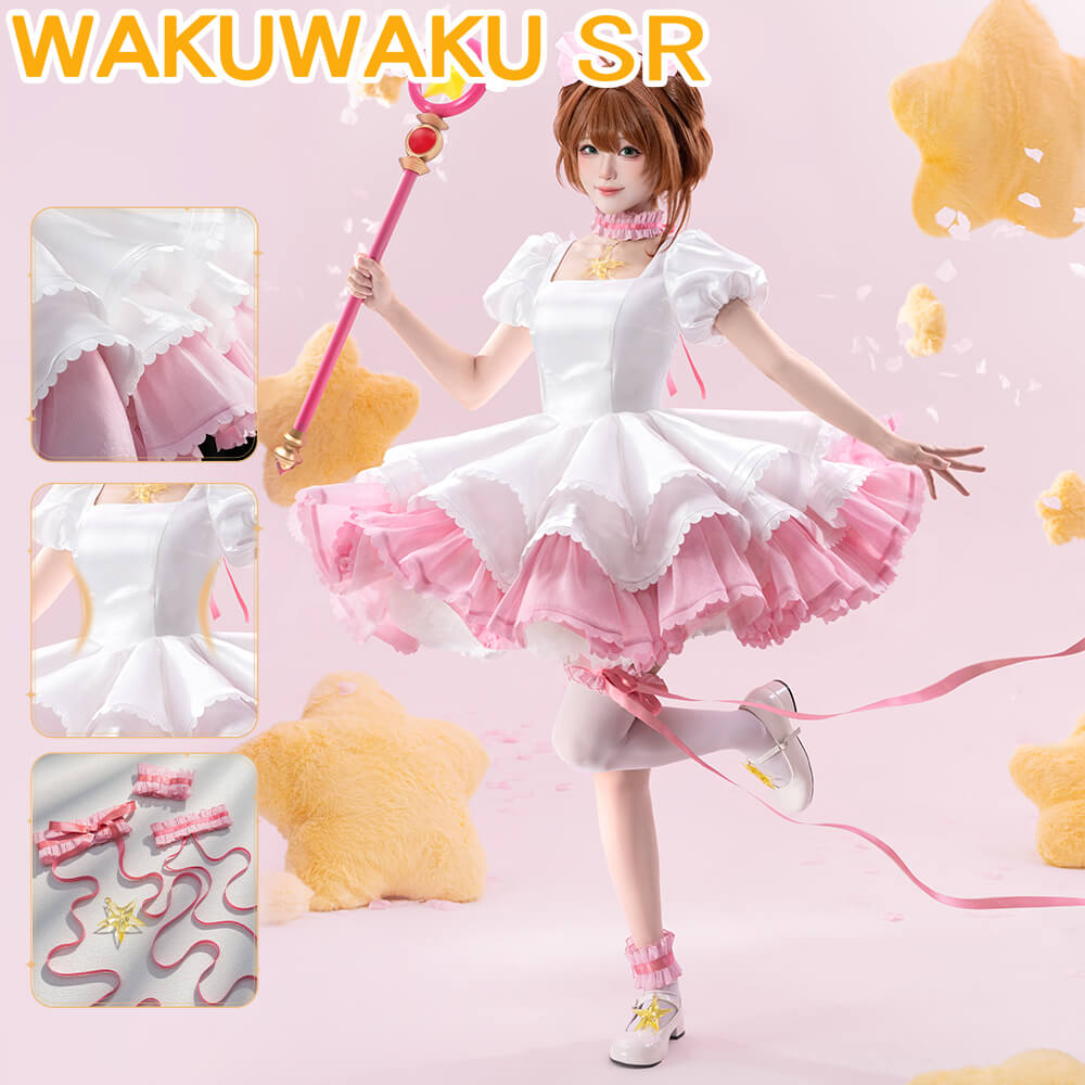 Kinomoto Sakura Cosplay Costume Anime Card Captor Sakura Cosplay WakuWaku-SR Women Pink Dress Costume Sakura Battle Suit Cosplay